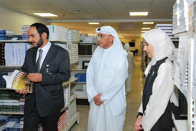 تقدم الأستاذ الدكتور نواف المطيري بجولة تفقدية في مكتبة الطالب الجامعي بصحبة الدكتور حامد الفريح ومديرة المكتبة بالانابة الأستاذة فجر المجبل.